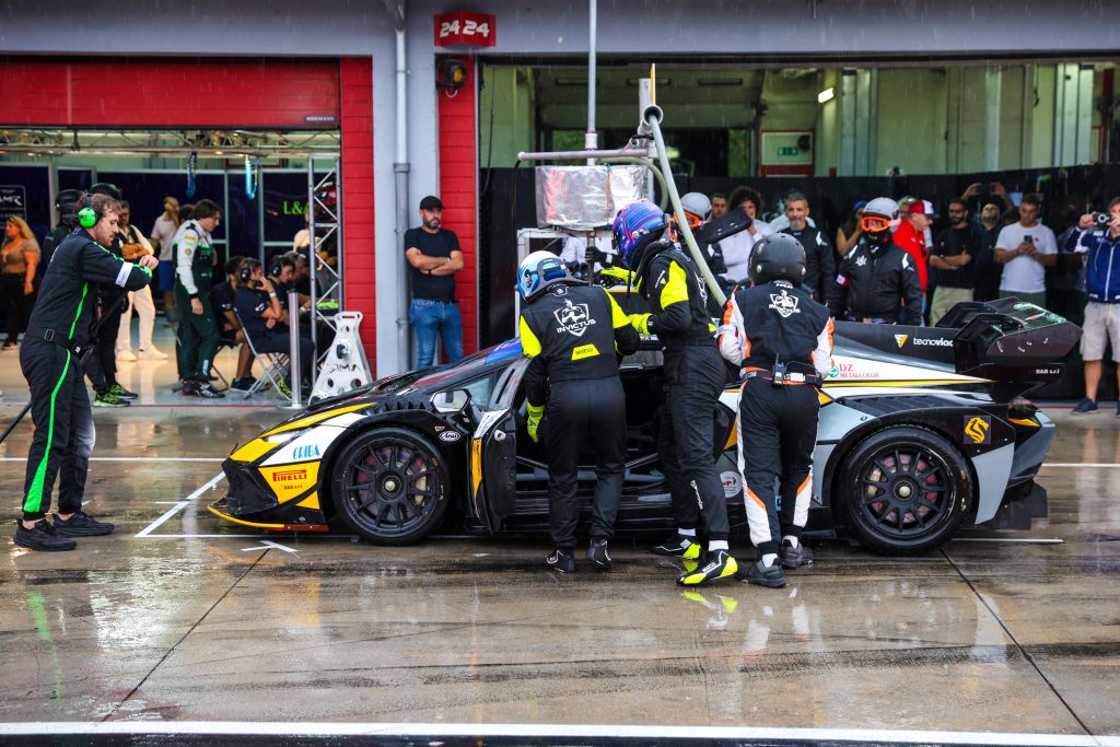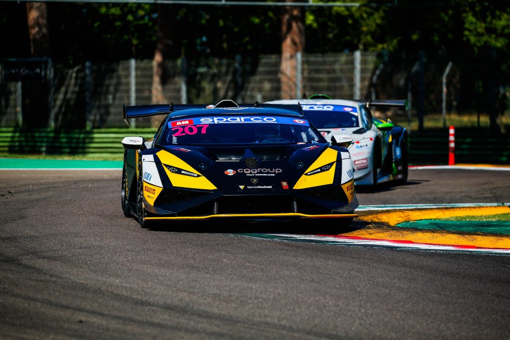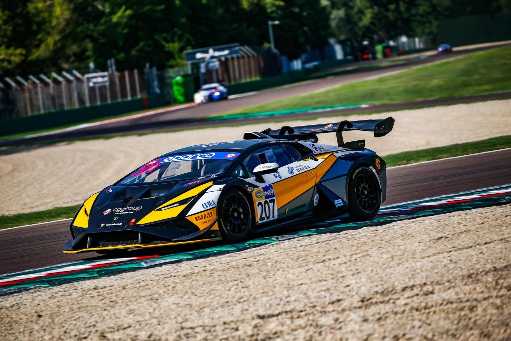 Invictus Corse conquista il suo primo podio, nel Campionato Italiano Gran Turismo Endurance, classe AM, all’Autodromo Enzo e Dino Ferrari di Imola. L’equipaggio composto da Andrés Méndez – Edoardo Barbolini – Giovanni Anapoli ha dato prova di lucidità, segue freddo e di concentrazione a bordo della nuova Lamborghini Huracan Super Trofeo Evo2 #207 nonostante la forte pioggia abbattutasi sul tracciato del Santerno, a pochi minuti prima dello start di gara. Condizione meteo che ha compromesso l’intera manche con ben due le bandiere rosse con ripartenza all’attivo, una lunga sosta in pilane con relativa riunione dei team manager prima di riprendere la corsa, numerosi incidenti, Safety Car e Full Course Yellow, tanto da portare la direzione gara a interrompere la corsa al 104° minuto a causa della pista impraticabile. Nonostante un piccolo testacoda alla Curva delle Acque Minerali e un intoppo in un cambio pilota, la squadra di Maranello è stata consistente e determinata nel raggiungere e conquistare il terzo posto, sotto alla bandiera a scacchi, ed il primo podio assoluto di categoria al primo anno di debutto. Un risultato frutto di un nuovo organigramma della squadra che ha portato maggior sinergia e performance fin dalle prime libere del venerdì. Sabato nelle FP3, infatti, Invictus Corse centra il primo crono di categoria, in 1’45.996s, salvo poi non riuscirsi a ripetere nella sessione di qualifica del pomeriggio, siglando il tempo di 5’18.077s nella sommatoria dei tre turni, chiudendo con il secondo crono e con altrettanto entusiasmo. Il podio di Imola ripaga dell’impegno profuso dell’intera squadra e regala morale dopo due round di inizio stagione particolarmente difficili, dando prova di un potenziale ancora tutto da esprimere.